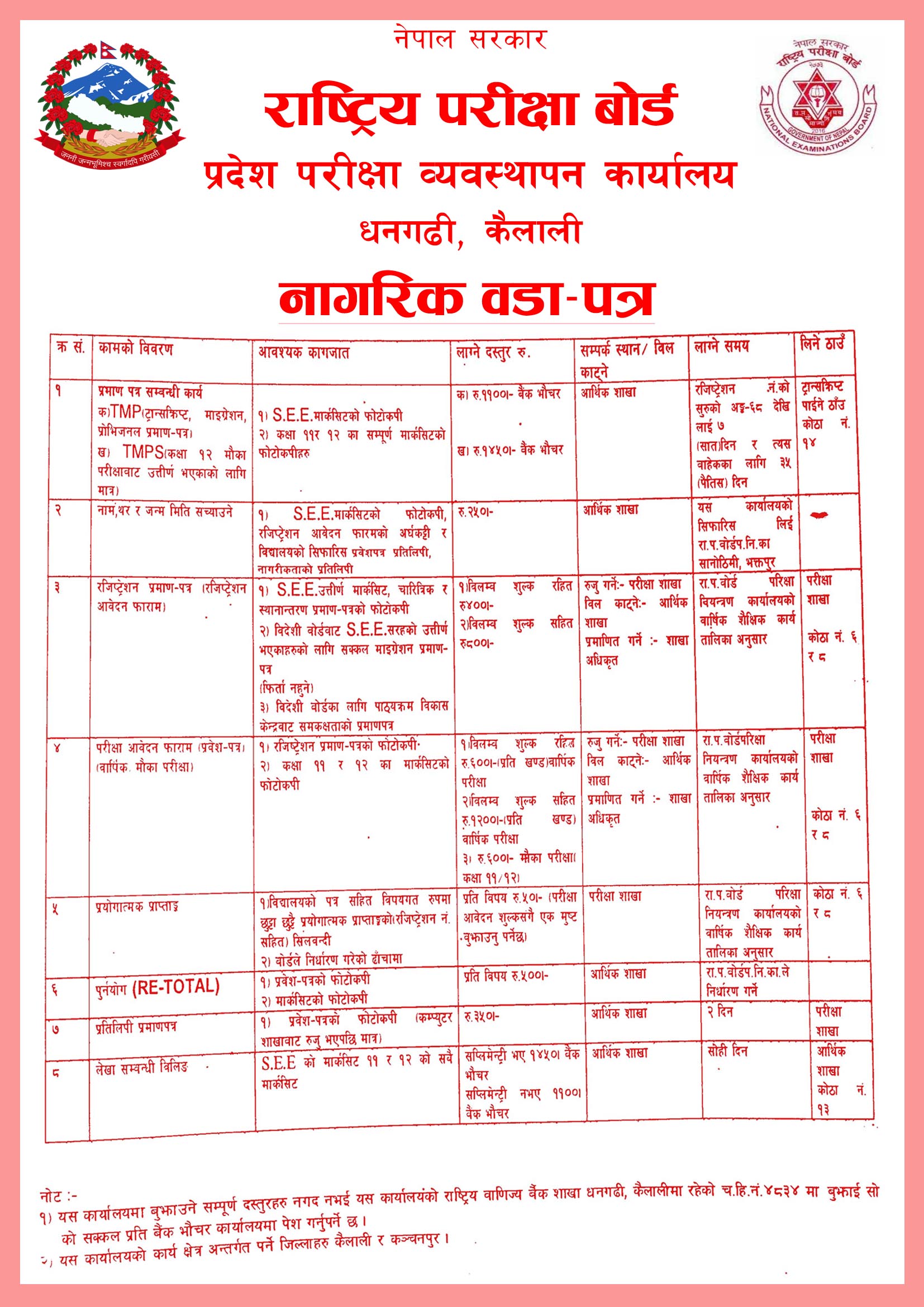 नेपाल सरकार राष्ट्रिय परीक्षा बोर्ड सानोठिमी भक्तपुरको कक्षा १२ को पूराना आंशिक/गेडवृद्धि परीक्षार्थीहरूको परीक्षाफल प्रकाशनसम्बन्धी बिज्ञप्ति